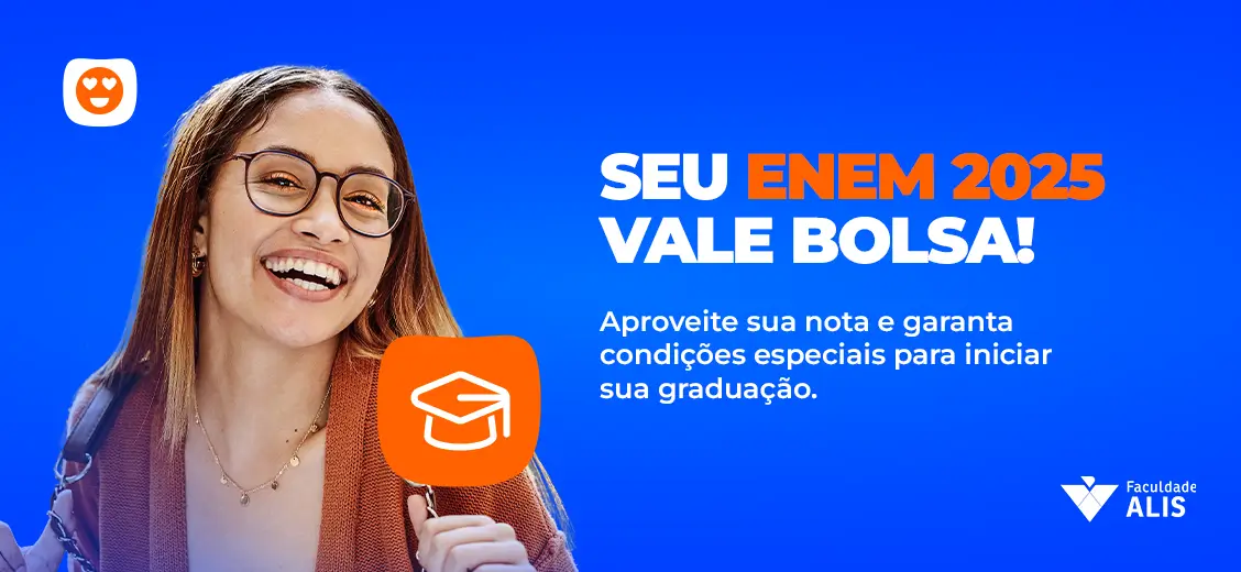 Use sua nota do ENEM, garanta a sua bolsa na Faculdade Alis e dê o start na realização dos seus sonhos! Preencha agora o formulário e descubra o valor do seu desconto. Seu futuro começa aqui.